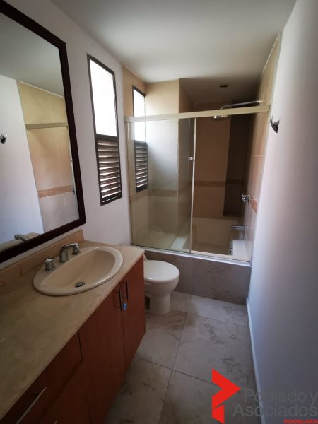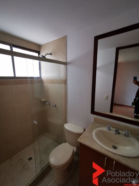 Apartamento en Poblado San Fernando, consta de 3 alcobas, más la de servicio, 3 baños más el social y el de servicio, biblioteca, estudio, balcón, calentador, citófono, zona de ropas amplia, parqueadero, cuarto útil, portería, ascensor, zonas comunes.